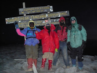 It is just a few hours since we returned from our eight day climb. The internet connection is slow, so I won't be able to give you many details, but the most important information is that we were both successful in getting to the summit of Mt Kilimanjaro (26 July 2010). It was surprisingly easy, given the hugeness of the mountain. It was easy because we trained well, because we allocated enough days to acclimatize, and because we had a good guide and team supporting us. Edward, our guide, had a deliberate pace that he maintained for the entire time. In demonstrating, day after day, that we were able to meet the anticipated time goals by going at his speed, I came to trust him to lead me up the mountain. So on summit day I just trudged behind his red gaiters, step after step, and listened to my iPod music, and eventually we got there! Fortunately we did not have any serious problems with the altitude, which was a real gift, since many people do. Initially the outfitter had suggested that since we were "old", that we would take longer to get to every stage, but we made the summit in 6 hours, and passed quite a few other groups along the way, so that felt vindicating.